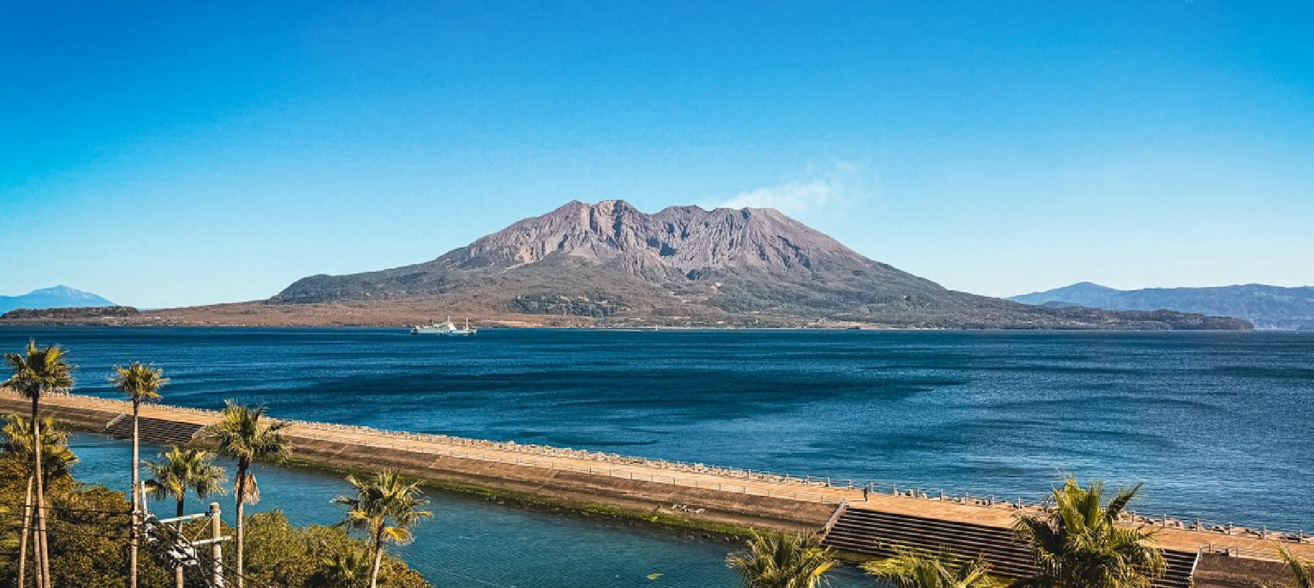 桜島を間近に望む客室、