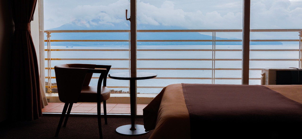 全室オーシャンビューの客室からは、鹿児島を代表する絶景が一望できます。朝は清々しい日の出、昼は輝く青い海、夕暮れは茜色の水平線と山々、時とともに表情を変える美しい景色をお楽しみください。