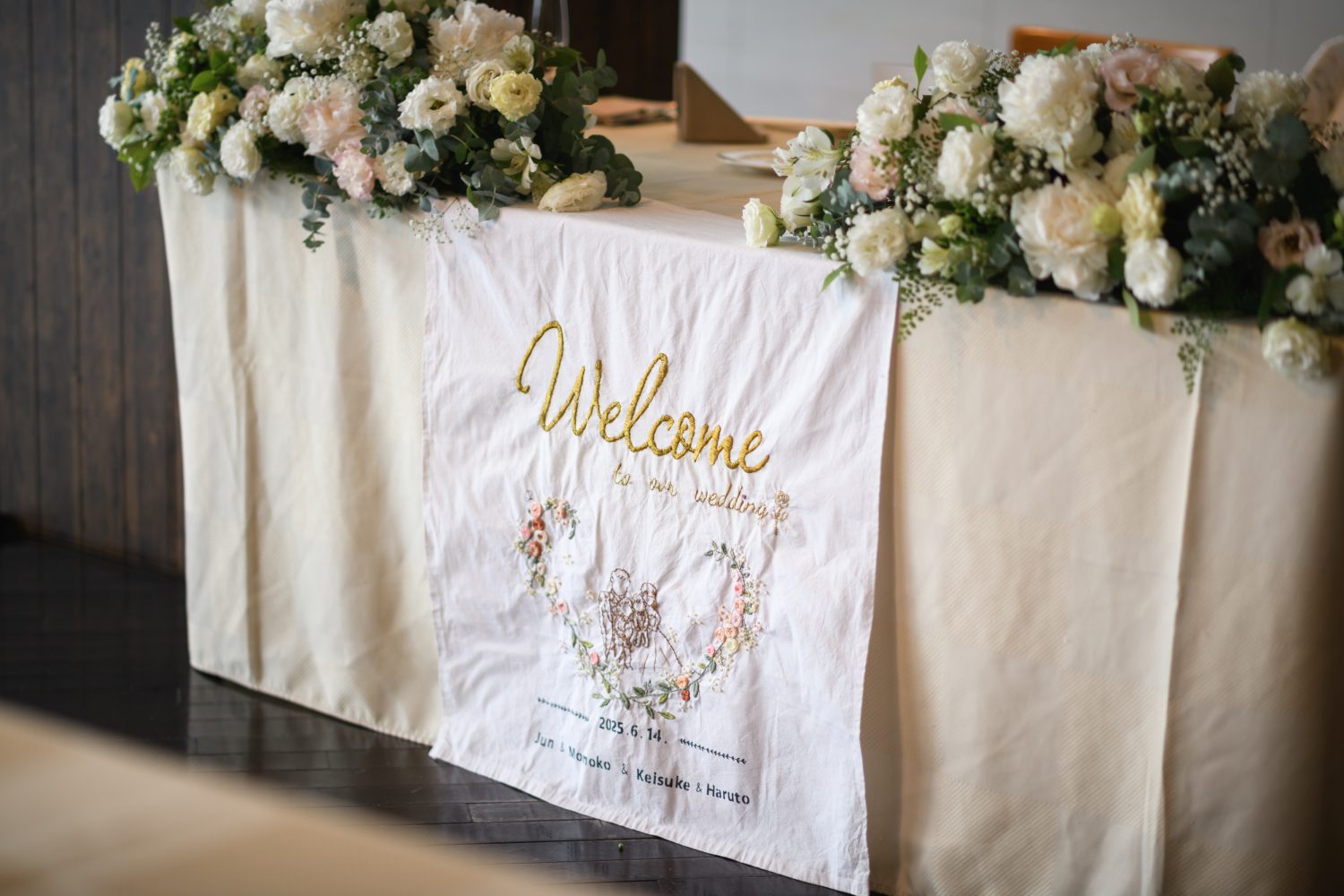披露宴の高砂にも新婦様手作りのタペストリーを(^▽^) -
