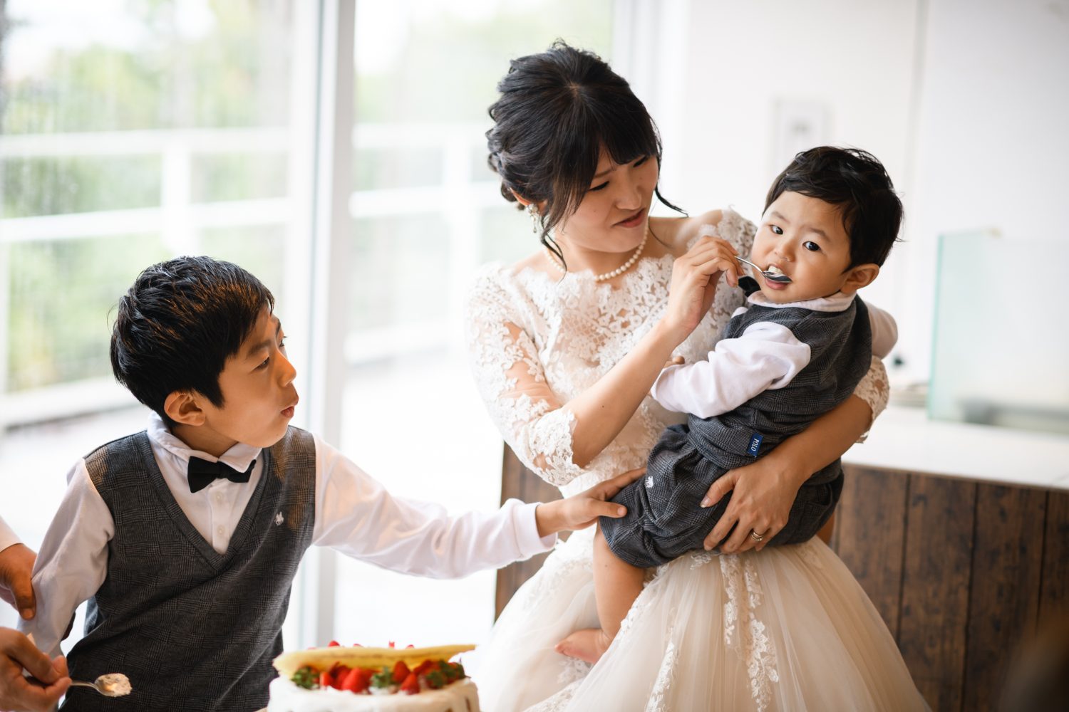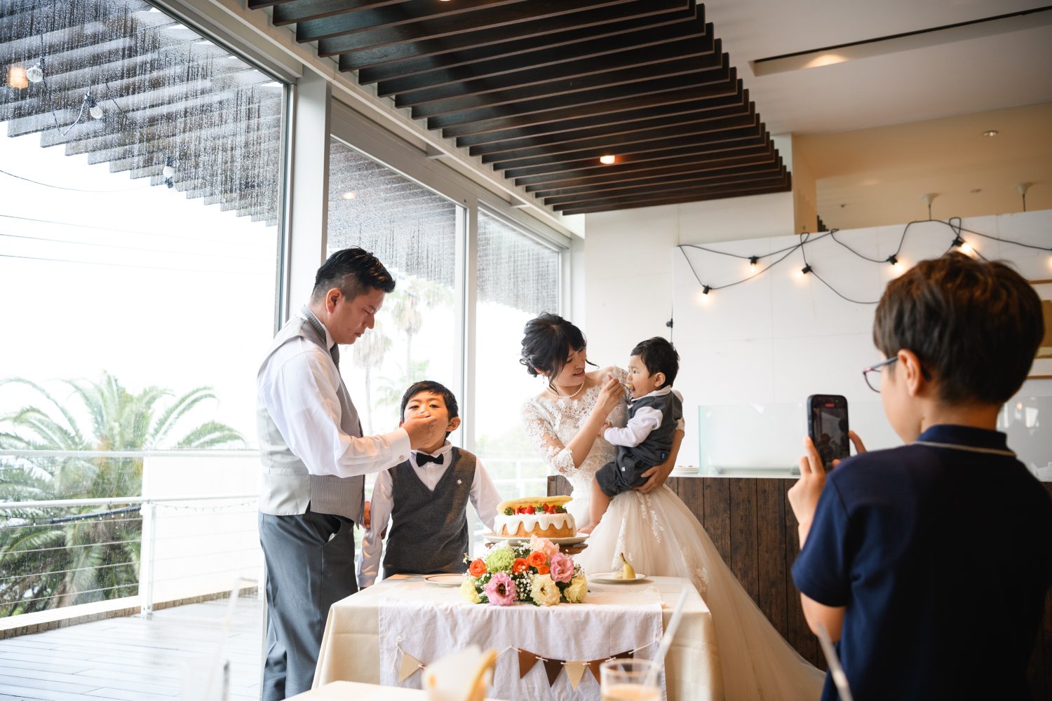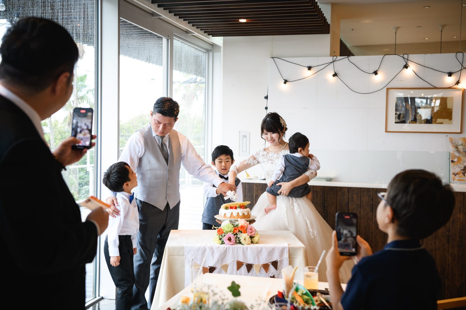 ご家族でケーキ入刀をした後、お子さんたちへ
