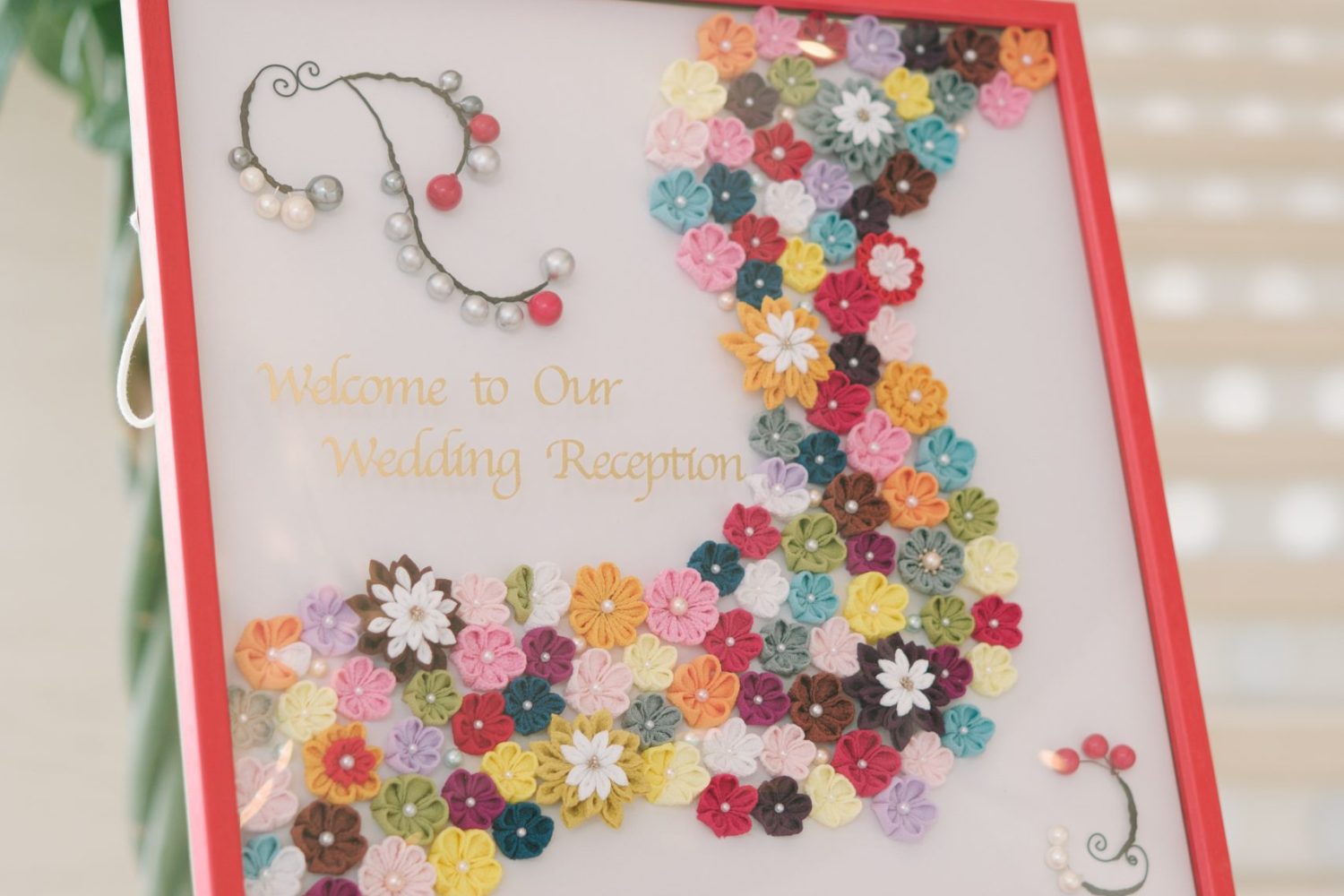 新婦様のお母様が心を込めて手作りされたウェルカムボード。