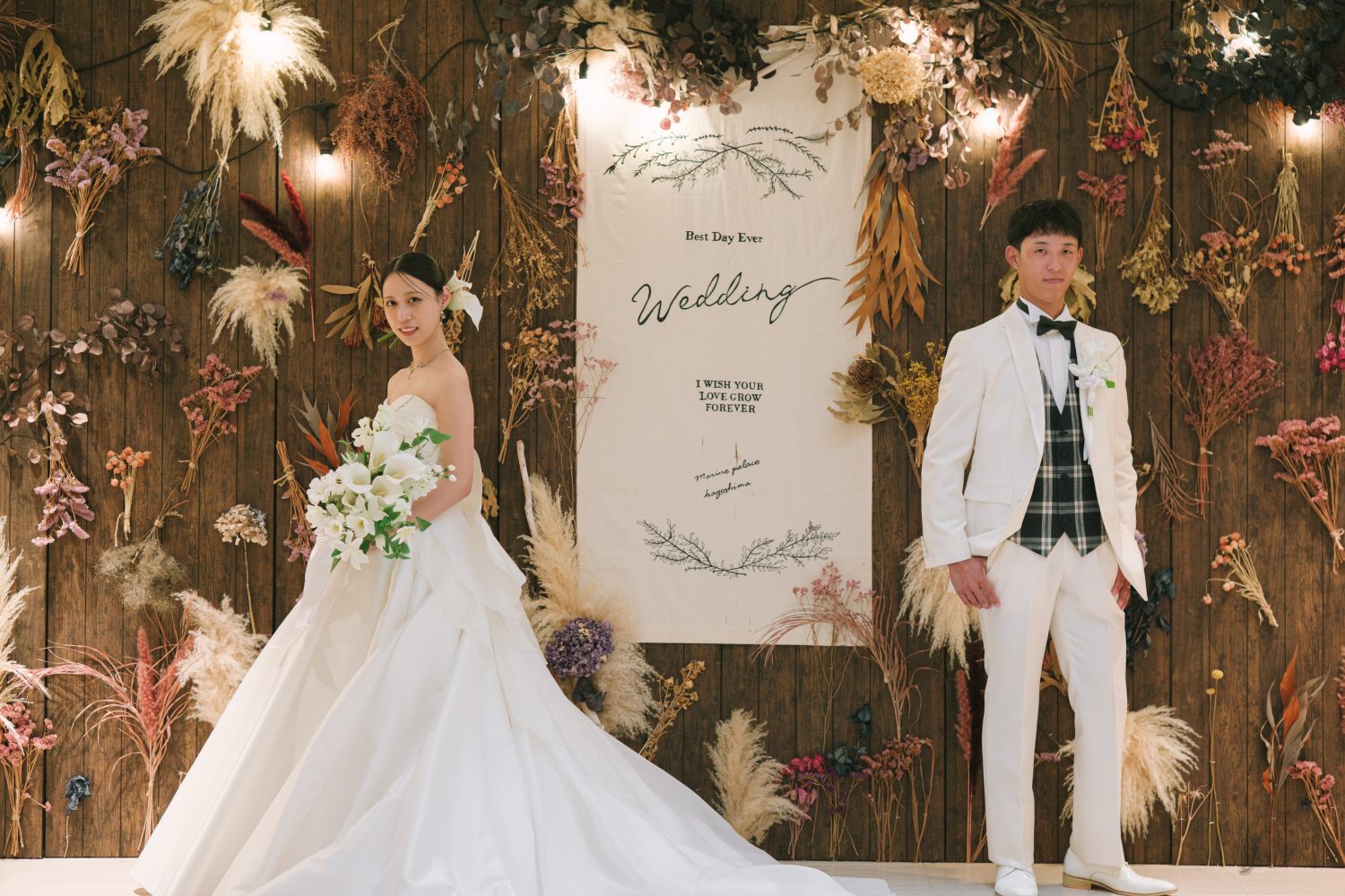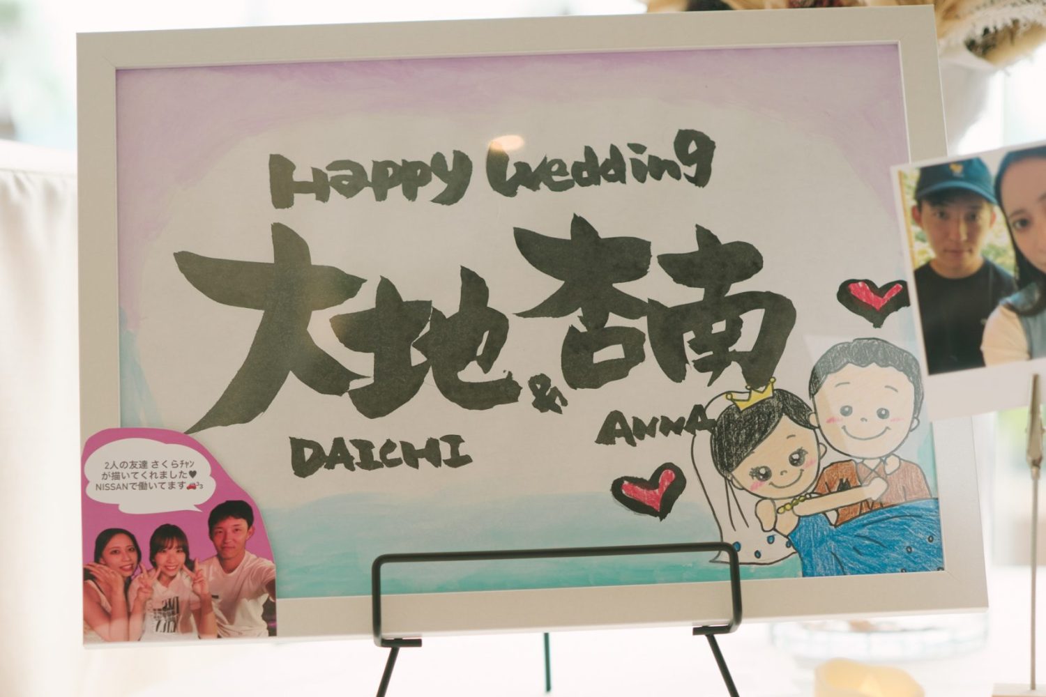 力強い文字と可愛らしい似顔絵が見事に調和し、おふたりらしさが伝わる素敵な仕上がりです。