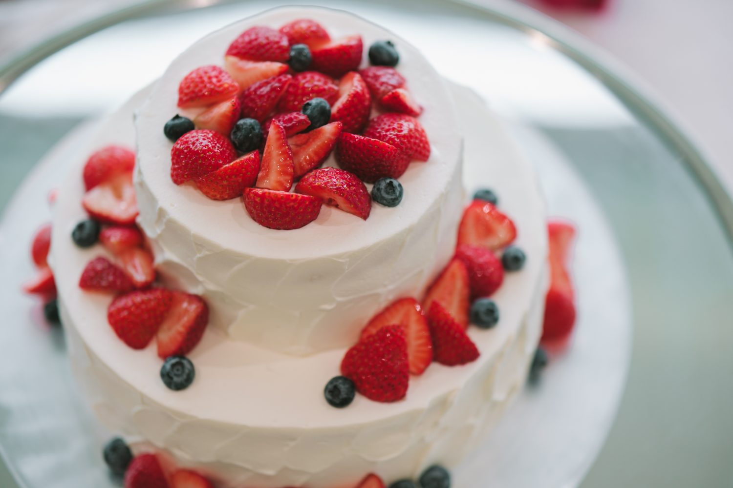 ウェディングケーキは苺とブルーベリーをふんだんに使用しました🍓どこから見ても可愛くお写真が撮れるよう果物の配置をしたところがポイントです。